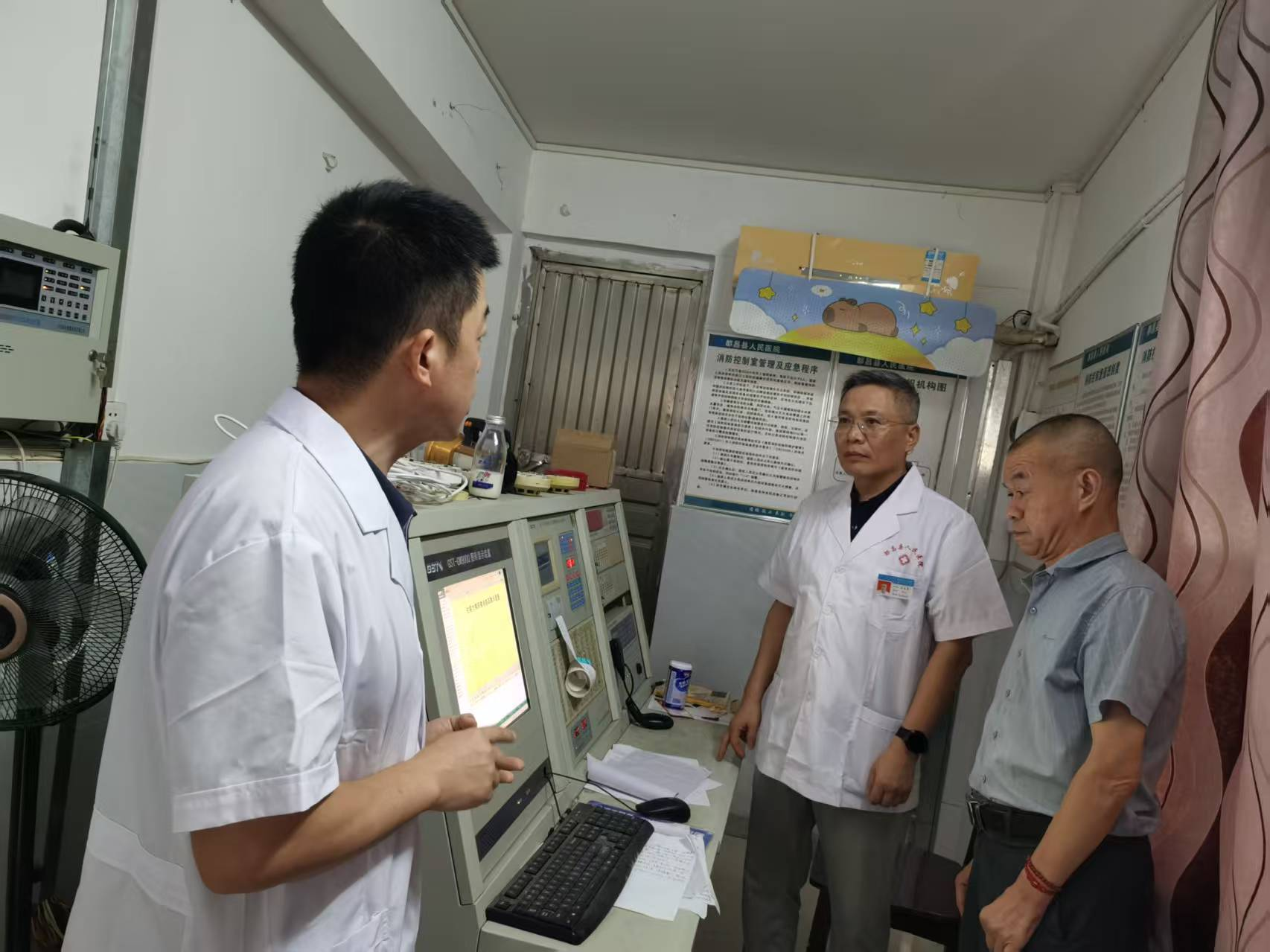 检查过程中,检查组一行先后走进各临床病区、急诊科、医技科室及行政后勤部门,与科室负责人、一线医护人员深入交流,详细询问节日期间医疗护理排班计划、安全生产责任分解细节。针对医疗核心制度执行、服务意识提升、院感防控措施落地、消防设施完好性、医疗设备运行状态、信息系统安全稳定性、危化品规范管理及用水用电安全等关键环节,检查组采取“看现场、查记录、问流程”的方式,逐一排查隐患、逐项核实落实情况。