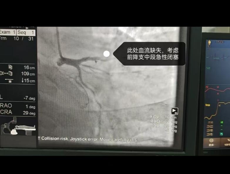 当晚,患者突发剧烈胸痛、大汗淋漓,家属紧急拨打120后,医院胸痛中心立即启动绿色通道。急救人员通过远程心电图实时传输系统,在救护车抵达前便将患者病情数据同步至胸痛中心,实现“患者未到,信息先到”。患者入院后直接绕行急诊科,快速进入导管室,心内二科(老年医学科)医疗团队仅用时20分钟便完成冠状动脉造影,确诊为前降支近中断完全闭塞——这是心脏供血最关键的血管之一,一旦完全堵塞,心肌坏死面积将迅速扩大,导致心衰、心源性休克甚至猝死。