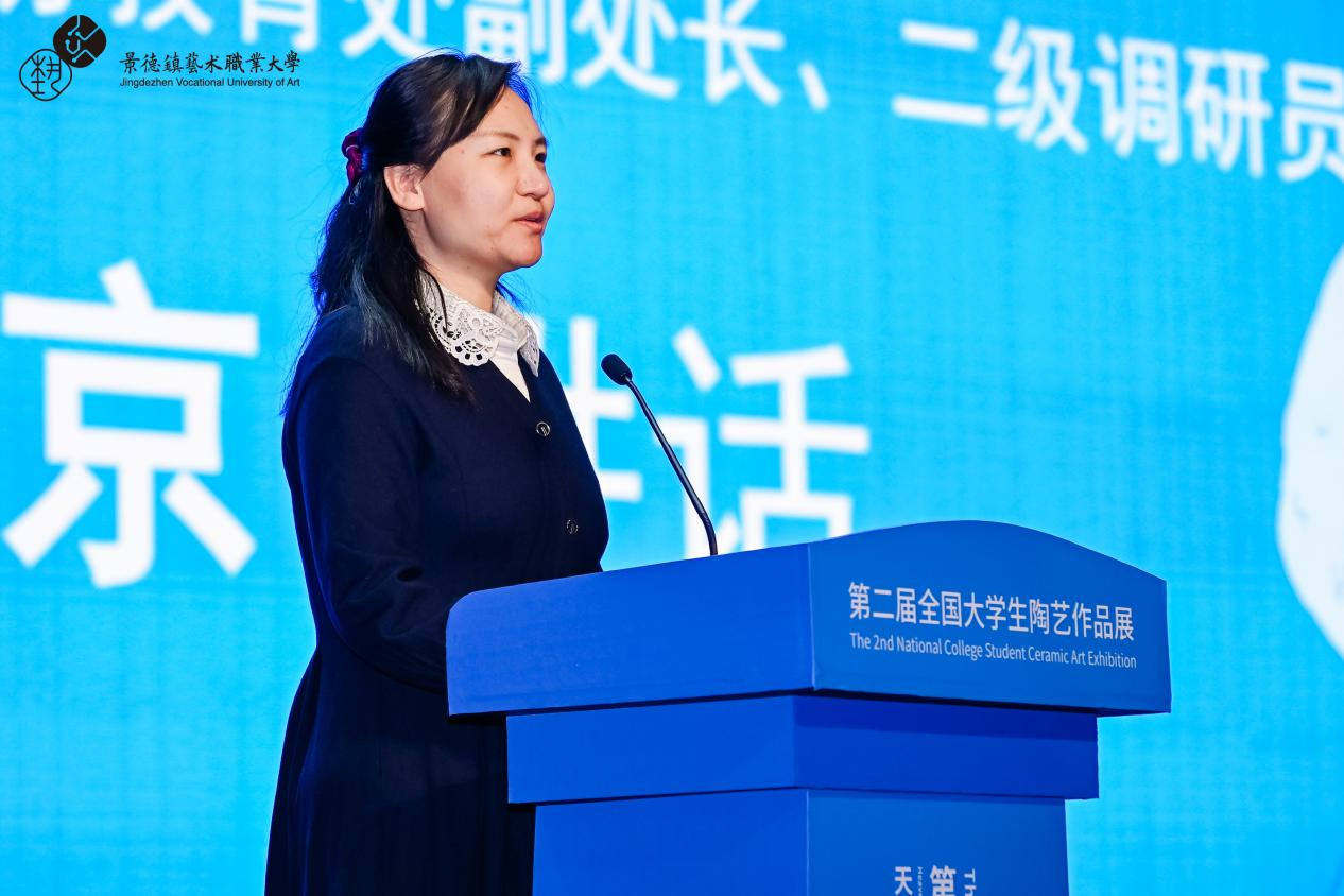 刘立京在讲话中表示,本届展览是全国高校美育浸润行动的重要成果,也是青年学子传承中华文脉、践行文化自信的生动实践。她指出,美育是党的教育方针的重要组成部分,教育部正全面实施学校美育浸润行动,希望以本届展览为契机,进一步深化高校美育改革,完善协同育人机制,共同推动美育高质量发展。