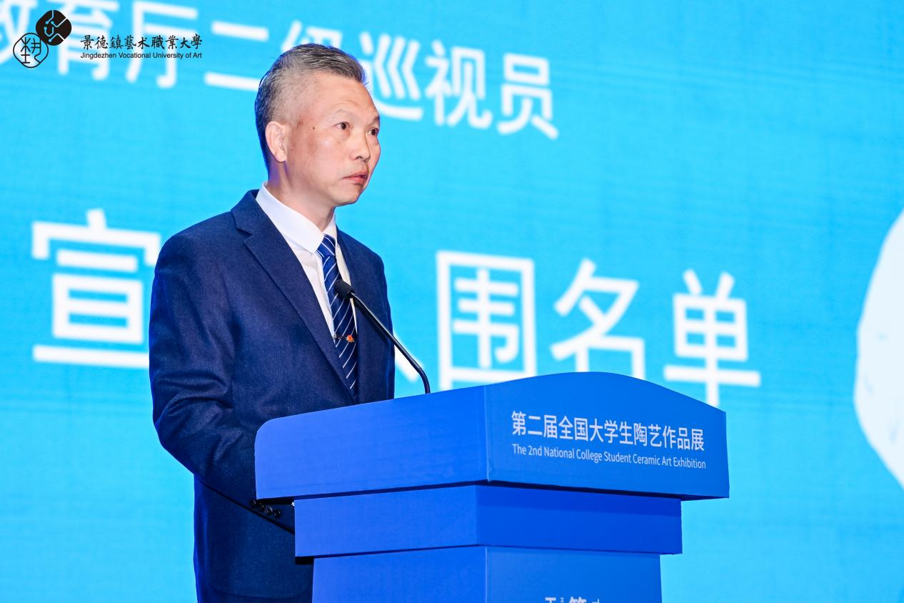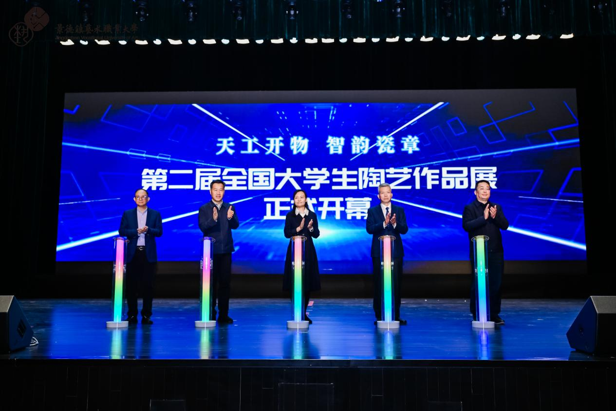 教育部体卫艺司艺术与国防教育处副处长、二级调研员刘立京,江西省教育厅二级巡视员陈晓通,景德镇市委常委、宣传部部长张龙,国际陶艺学会(IAC)理事、中国区代表万里雅,景德镇陶文旅集团党委书记、董事长、景德镇艺术职业大学理事长刘子力,景德镇艺术职业大学党委书记伍恒光、校长冯小苏,以及来自全国各省教育厅、高校领导,艺术家代表、参展师生及媒体代表共650人出席开幕式。开幕式由国家陶瓷文化传承创新试验区管委会专职副主任高翔主持。