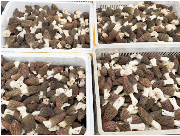 新鲜采摘的羊肚菌,首先会由工人进行分拣,然后按照个头大小进行打包分装。一部分羊肚菌会通过冷链运输送往各地市场,让消费者第一时间品尝到这份春日的鲜美。而另一部分,则会开启它们的“变身”之旅,进行烘干处理。这些干羊肚菌不仅便于储存和运输,还能在不同季节满足消费者的需求,实现错峰销售。