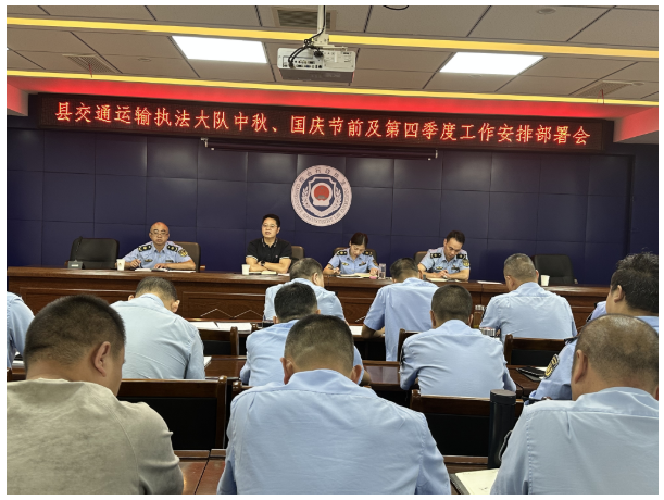 近日上午,北川县交通运输执法大队召开中秋、国庆假期服务保障和第四季度安全生产工作部署会。大队长周雪梅主持会议,副局长王永平讲话,全体执法干部参加会议。