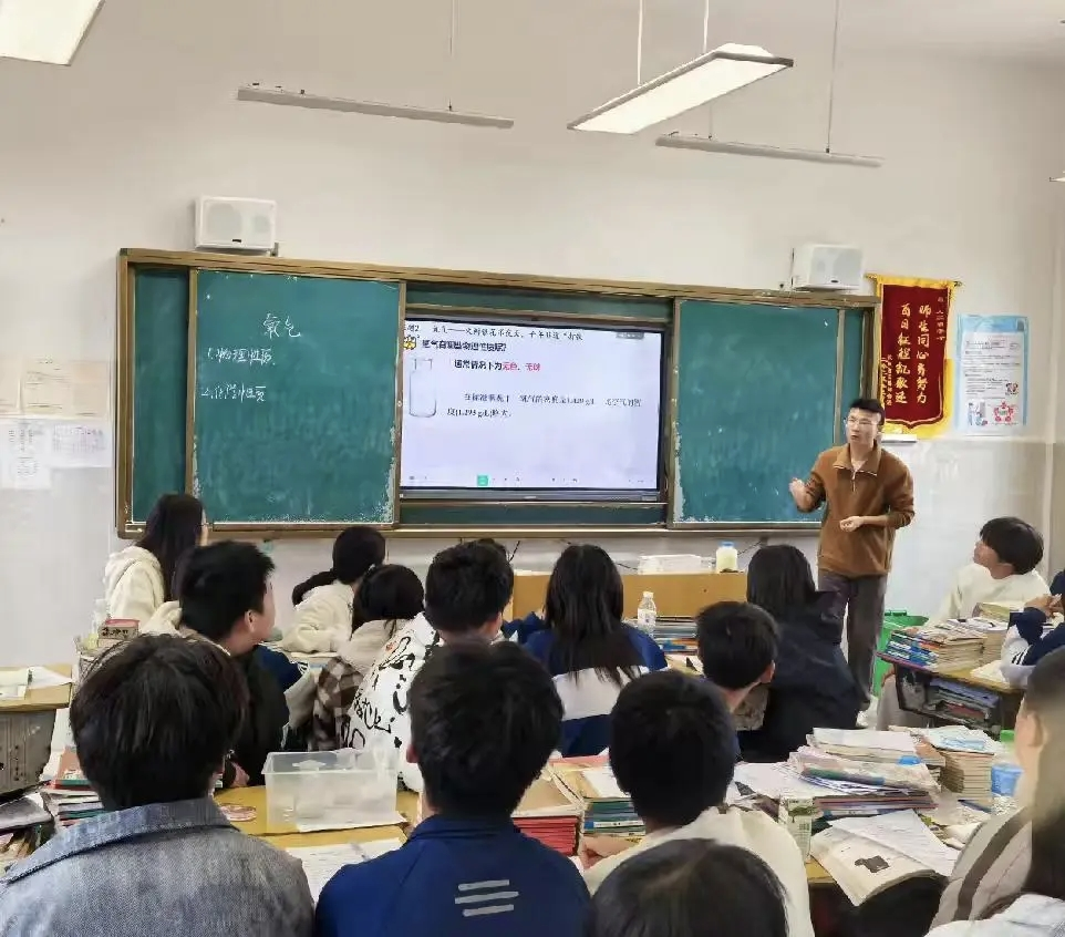 随后,谭政威老师在九年级(1)班带来《分子和原子》示范课。他以“花变色魔法”实验巧妙导入,神秘的实验现象迅速抓住学生注意力,激发了大家对微观世界的探索欲望。授课过程中,谭老师围绕“是什么让花变色”的核心问题,设计系列递进式探究实验,将抽象的分子、原子概念具象化、生动化,让学生在“做科学”的过程中主动构建知识体系,课堂氛围活跃有序,实现了知识传授与素养培育的有机统一。