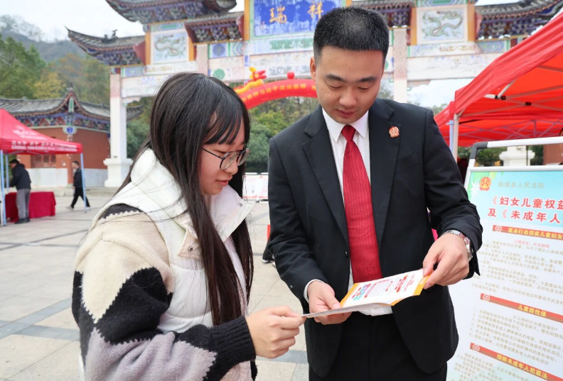 法院干警通过悬挂横幅、发放宣传册等方式,围绕劳动权益保障、养老诈骗、未成年人保护等与群众生活息息相关的法律问题,耐心释法明理,引导群众“办事依法、遇事找法、解决问题用法、化解矛盾靠法”。