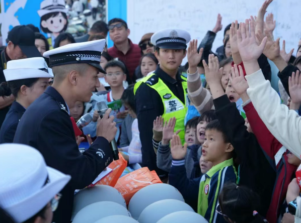 活动现场,交警同志率先带领大家学习交通手势操。“停止信号要伸直手臂,左转弯信号需先摆臂再转向……”伴随着清晰的指令,交警一边示范标准手势,一边讲解每个动作对应的交通含义。市民们纷纷跟随模仿,不仅掌握了识别交警手势的实用技能,更直观感受到交通指挥的严谨性,不少家长还带着孩子一起参与,让交通安全教育从娃娃抓起。