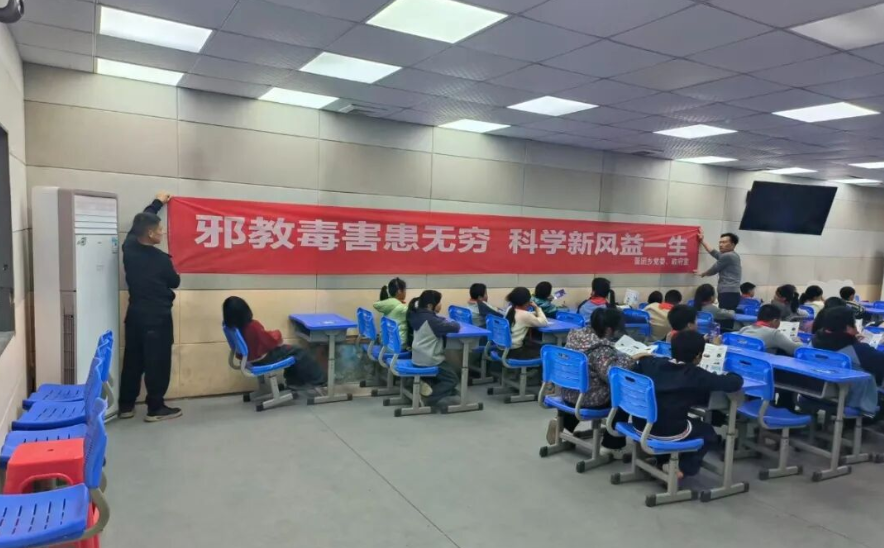 董团乡干部同步开展了反邪教普法宣传。通过发放宣传册、现场讲解等形式,向在场师生们介绍了邪教的基本特征、社会危害及防范方法,引导学生树立科学观念,增强辨别能力,自觉抵制邪教侵蚀,共同维护和谐稳定的校园环境。