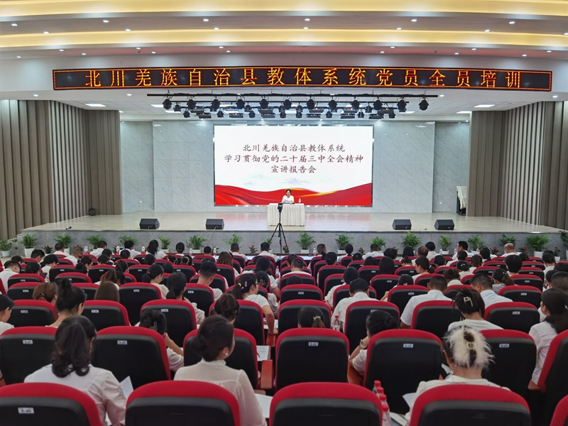 为认真贯彻落实全国党员教育培训规划,进一步提升北川教体系统党员教育培训工作能力,推动党员队伍建设和基层党组织建设再上台阶,根据《中共北川羌族自治县委组织部关于开展党员教育培训闭环清零行动的通知》《中共北川羌族自治县委组织部关于做好党员教育示范课下基层工作的通知》,9月2日中共北川羌族自治县委教育工作委员会在永昌中学学术厅成功举办了“深化党性教育 启航新征程”为主题的党员全员线上视频培训,教体系统下属55个党支部,一千余名党员参加本次培训。培训分四个部分进行。