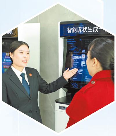 法院工作人员帮助当事人使用智能诉状生成一体机。姚思佳摄