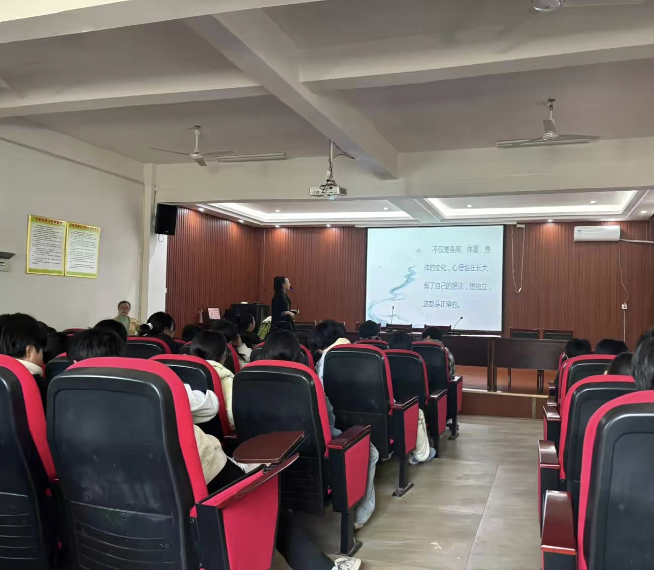 讲座尾声,曾老师进行总结梳理,明确告知孩子们:青春期的身体变化、情绪波动乃至叛逆行为,都是成长过程中的正常现象,无需为此感到害羞或焦虑,也不必因偶尔的自我否定而自我苛责。